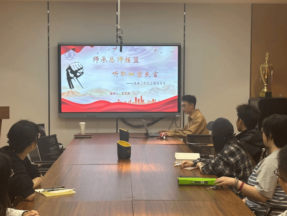 会议伊始,与会人员集中观看了2024年国家安全日宣传片和保密宣传片等教育视频,杨文琪围绕2024年全民国家安全教育日活动主题“总体国家安全观、创新引领10周年”,向大家介绍了全民国家安全教育日宣传教育活动的重点内容,带领大家学习了有关国家安全、保密工作的法律法规。随后,学校工大青年宣讲团成员王艺淇作《师承总师摇篮,听取加密良言——浅谈二十大之国家安全》主题宣讲,他从国家安全相关条例、国家安全内涵、牢筑国家安全意识防线等三方面进行介绍,并阐明了维护国家安全发展和建设要求,国家安全人人有责,要树立国家安全意识,自觉维护国家安全。最后,杨文琪表示,国家安全工作无小事,保密工作责无旁贷,全体师生必须进一步增强国家安全和保密意识,筑牢国家安全防线,坚决维护国家安全。作为国家安全教育的主阵地,我们应坚持底线意识,践行总体国家安全观,成为国家安全教育的积极参与者和推动者。