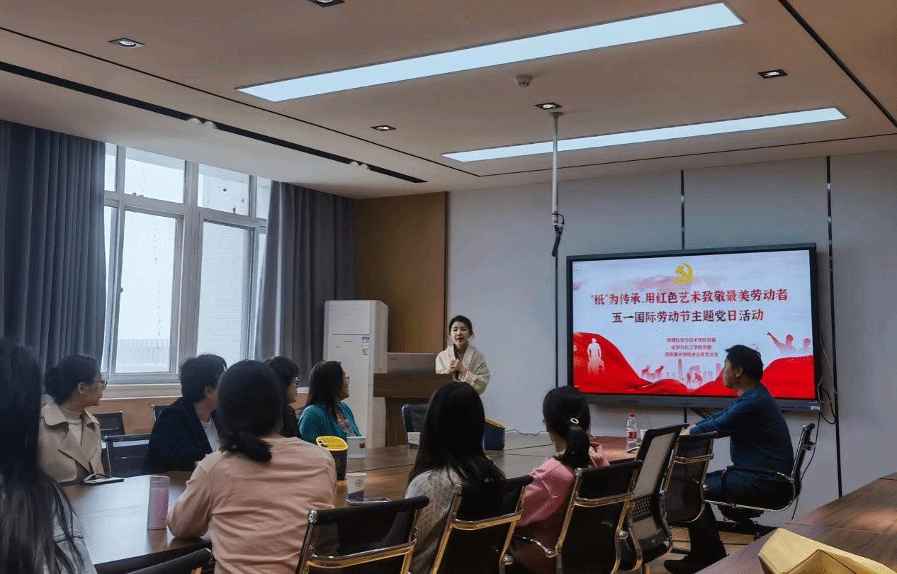 党委联合化学与化工学院党委、西安美术学院史论系党总支在学院楼454会议室共同开展“‘纸’为传承,用红色艺术致敬最美劳动者”主题党日活动。香腐