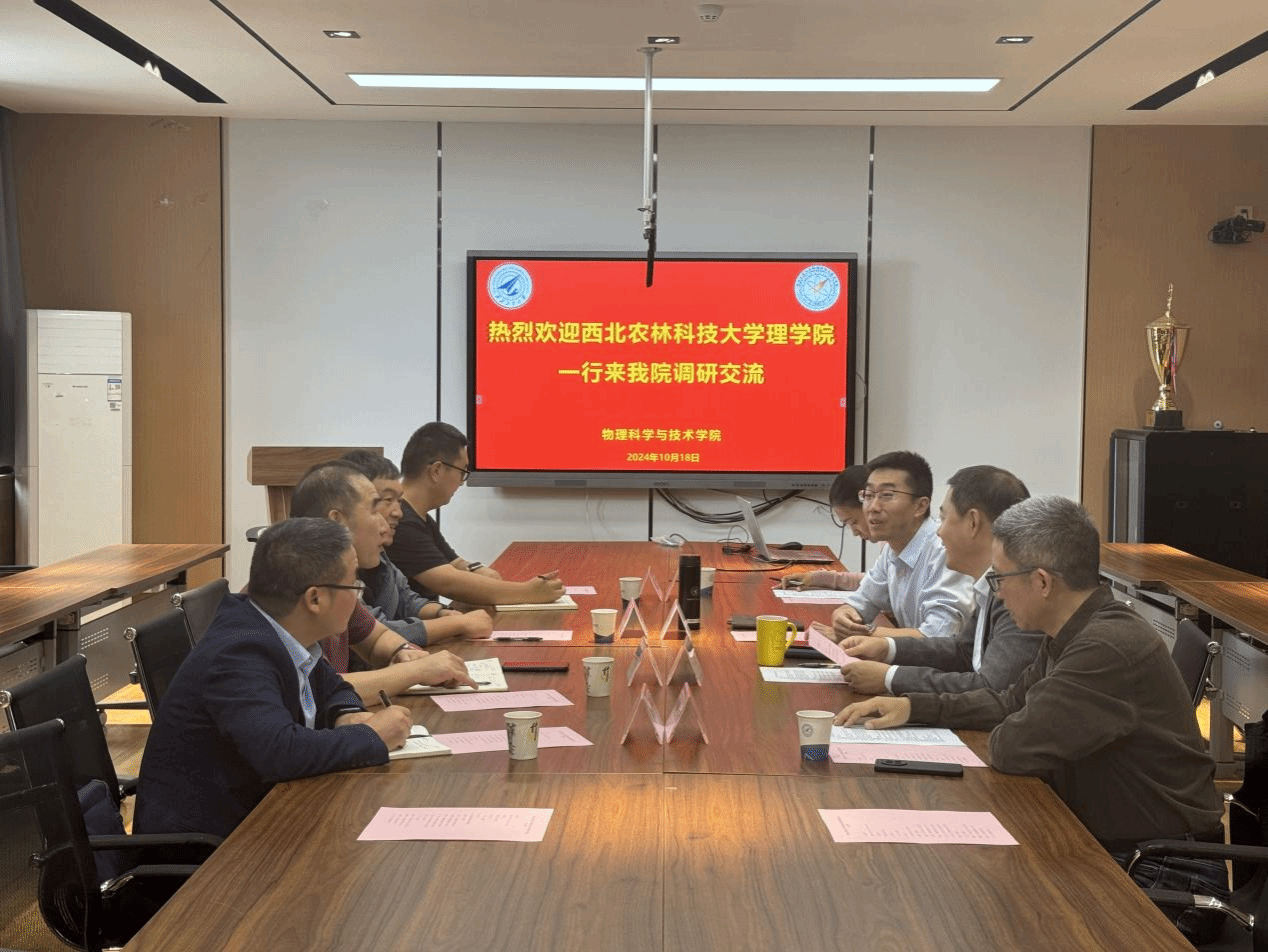 的基本情况以及学院在本科人才培养和物理学科建设等方面的工作。尹剑波从物理学学位点研究生培养情况、光学工程及光电信息工程学位点研究生培养情况、研究生培养过程管理与学位申报等方面对学院研究生人才培养情况进行了介绍。解迎革简单介绍了西北农林科技大学理学院的整体情况及人才培养情况。任文艺介绍了学院光电信息科学与工程本科专业人才培养方案、物理学硕士点和光电信息工程专硕点研究生培养情况及物理学科建设情况。而后,双方就人才培养、学科建设、实验室建设等内容进行了深入细致的交流。