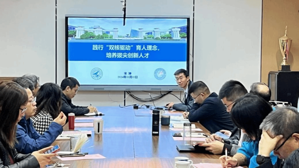 宋坤副院长进行了《践行“双核驱动”育人理念,培养拔尖创新人才》的主题汇报。从学院专业建设现状、落实“总师育人文化”引领人才培养的总体思路和具体举措以及下一步规划等三个方面全面介绍了学院推进“总师型”人才培养的情况。