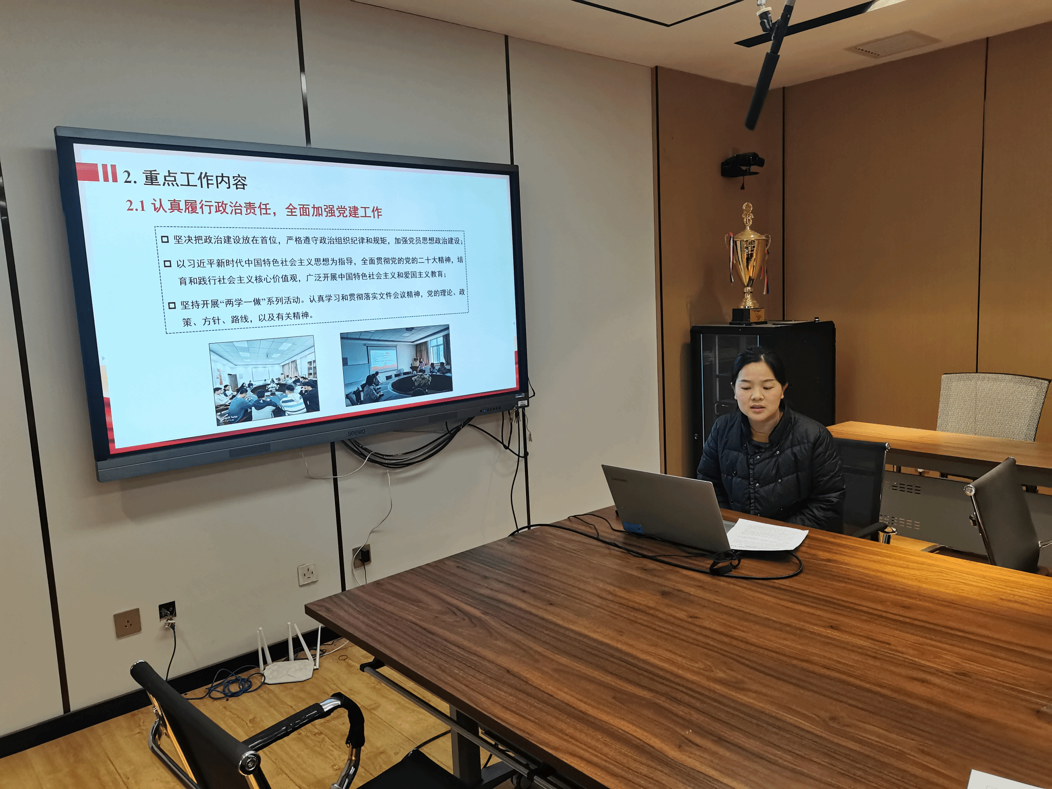 最后,晁小荣对各党支部书记的述职情况进行了点评,肯定了他们在过去一年取得的成绩与亮点成效,同时对各支部需加强改进的党建工作内容提出了要求,并提出四点希望:一是加强理论学习,更有创新;二是发挥党建引领,更有作为;三是打造党建品牌,更有亮点;四是党建数智赋能,更有保障。
