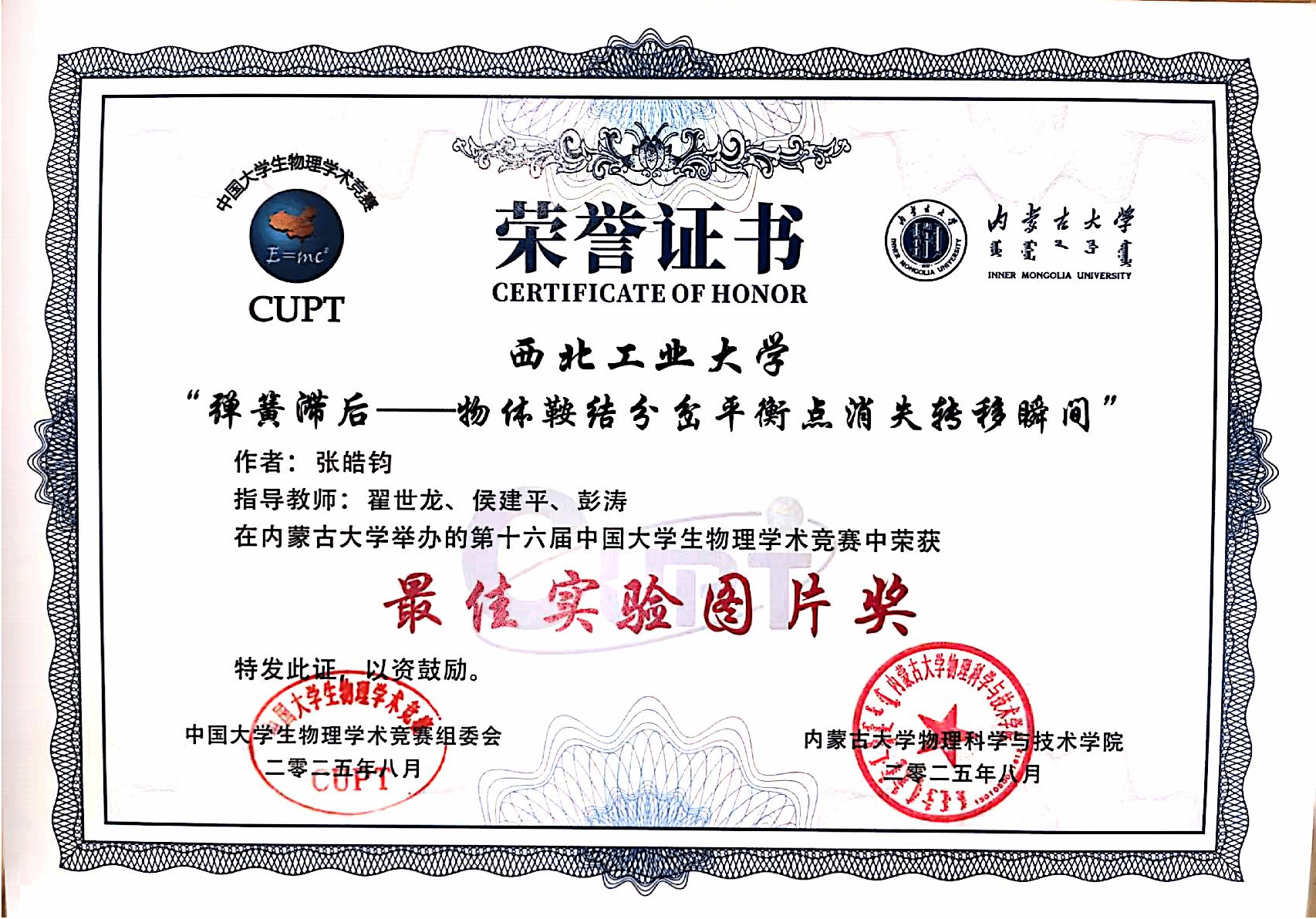 图3. 队员张皓钧最佳实验图片奖获奖证书