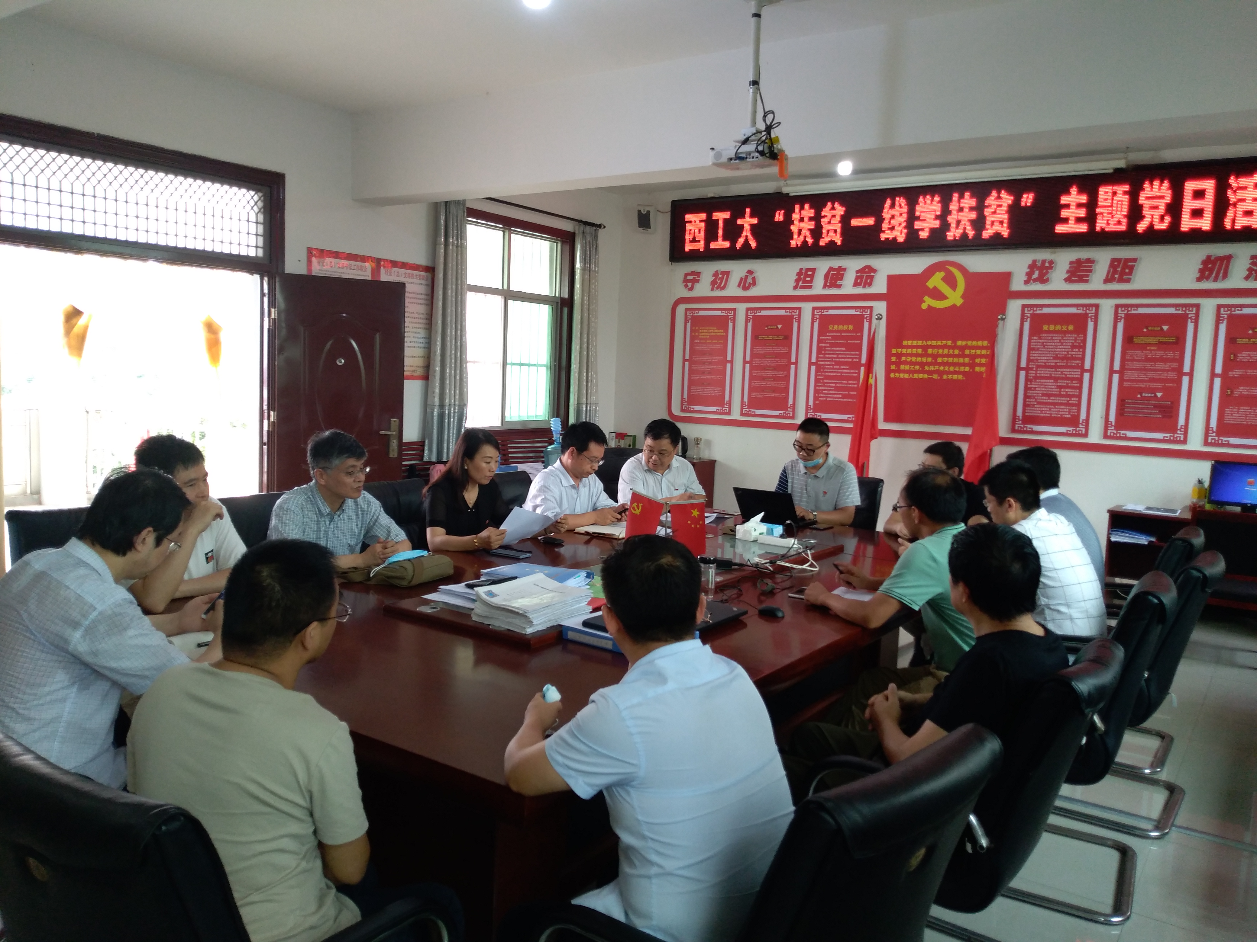 、化学与化工学院党委领导班子带领部分教师党支部书记、院办党员十余人赴鄠邑区余下街道灵山寺村开展主题为“扶贫一线学扶贫”的主题党日活动。西安市科技局派驻鄠邑区余下街道灵山寺村驻村工作队队长仇寅虎、西安市优秀驻村第一书记关盛元及相关工作人员参加会议。会议由物理学院副书记王洲航书记主持。