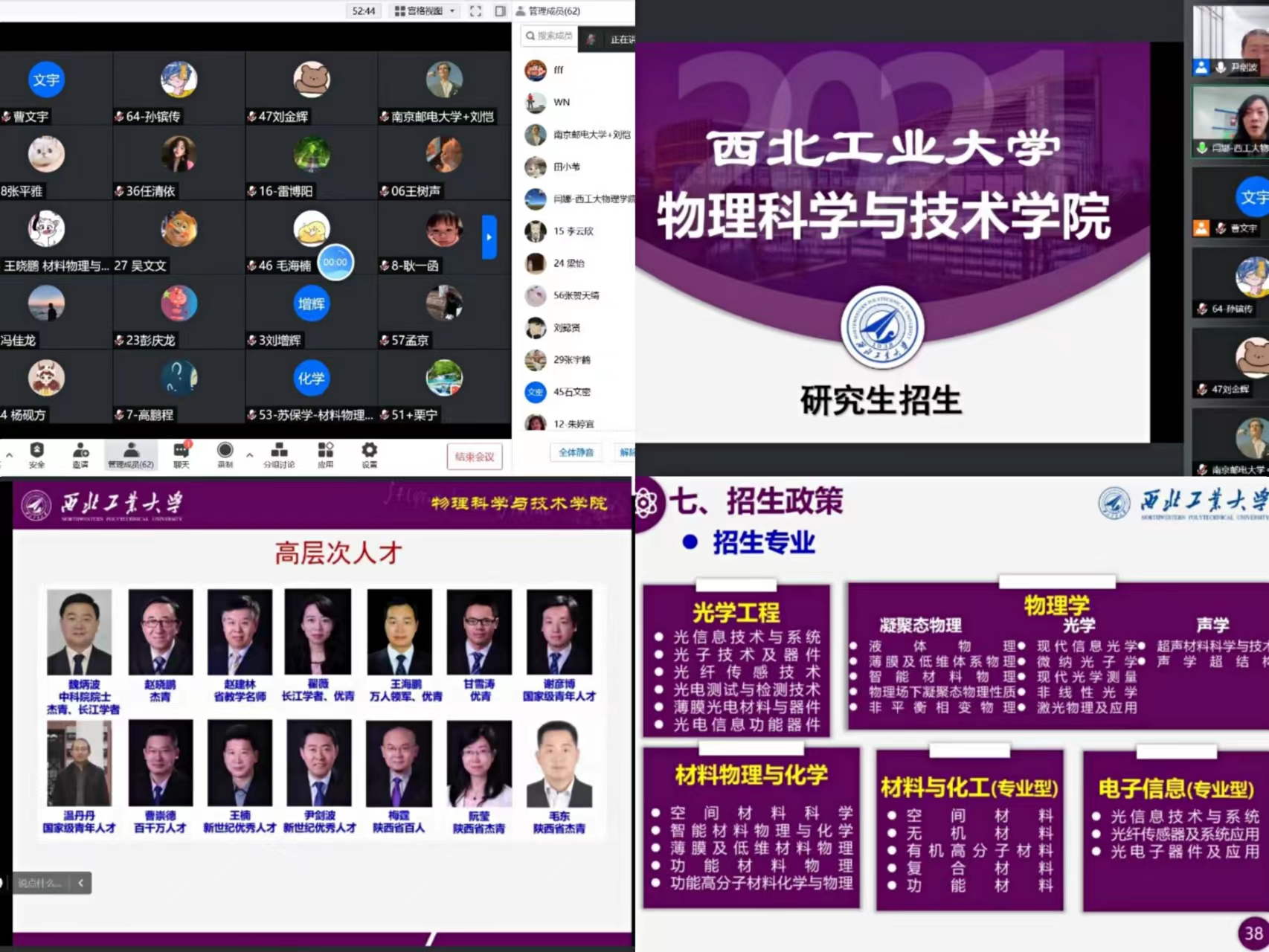 的整体情况。学院邀请在物理学、材料物理与化学和光学工程等多个学科做出突出贡献的10位教授进行了学术前沿讲座。