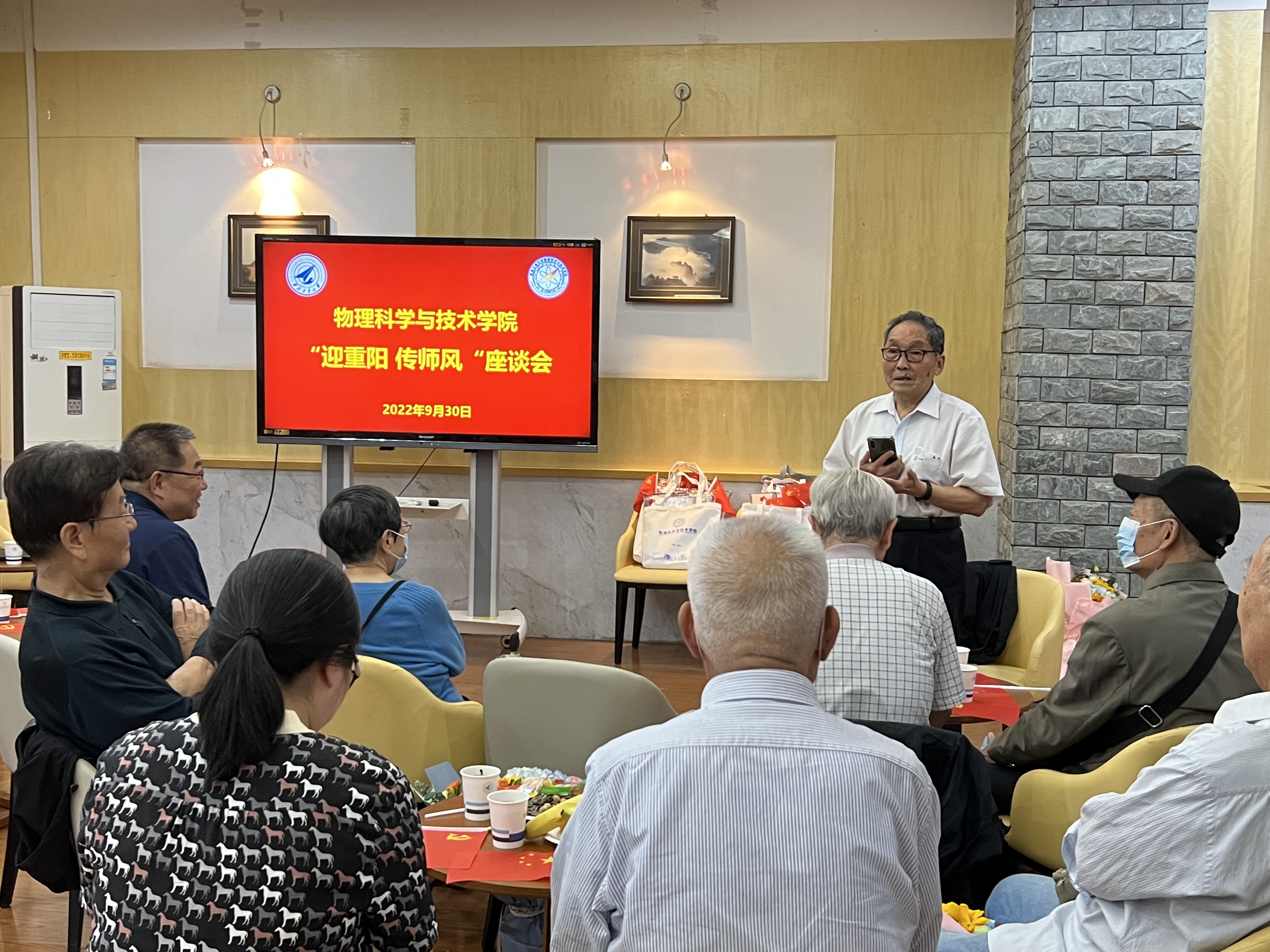 “迎重阳 传师风”座谈会在友谊校区健翔楼举行。学院党委书记晁小荣、副书记王洲航、工会主席郑建邦、院长助理闫娜、李东及其他中青年教师代表出席座谈会,与离退休老教师代表欢聚一堂、共庆佳节。