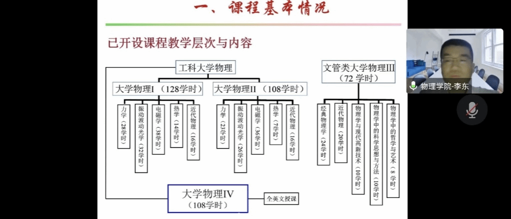 李东、杨超舜两位老师代表学院介绍了《大学物理》、《大学物理实验》的课程建设、教学组织等情况。北理工《大学物理》课程负责人胡海云老师和《大学物理实验》课程负责人刘伟老师则介绍了北理工两门课程的开展情况。