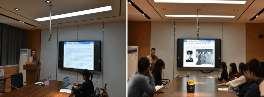 讲一段故事,品一段历史。为了发挥“五老”育人优势,进一步加强学院师生的党史学习教育,学院特别邀请学校离退休处党委委员、原学校宣传部部长黄迪民教授讲授“校史文化与爱国奋斗精神”思政课,他为师生们讲授了学校历史沿革,介绍了学校悠久历史中涌现出的大批革命先烈。详细讲述了刘海滨书记、寿松涛校长、刘咸一副校长、唐铎少将老一辈工大人鲜活生动而催人奋进的革命故事。他鼓励师生向榜样看齐,继承和发扬工大前辈们艰苦奋斗、坚韧不拔的革命精神,把榜样的精神和力量融入到学习工作中,砥砺前行。