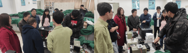 为了让队员们有充足的时间和空间展示作品,我们在每个比赛场地安排了2支参赛队伍,参赛队伍可提前2天在比赛场地完成作品的筹备工作。上午9:30,决赛评选正式开始。本次比赛的评委有侯建平、彭涛、方亮、杨超舜、冀若楠、王民和翟世龙老师。评委老师们仔细听取了各参赛队的汇报并现场观看了作品展示,提出了众多宝贵的意见和建议。