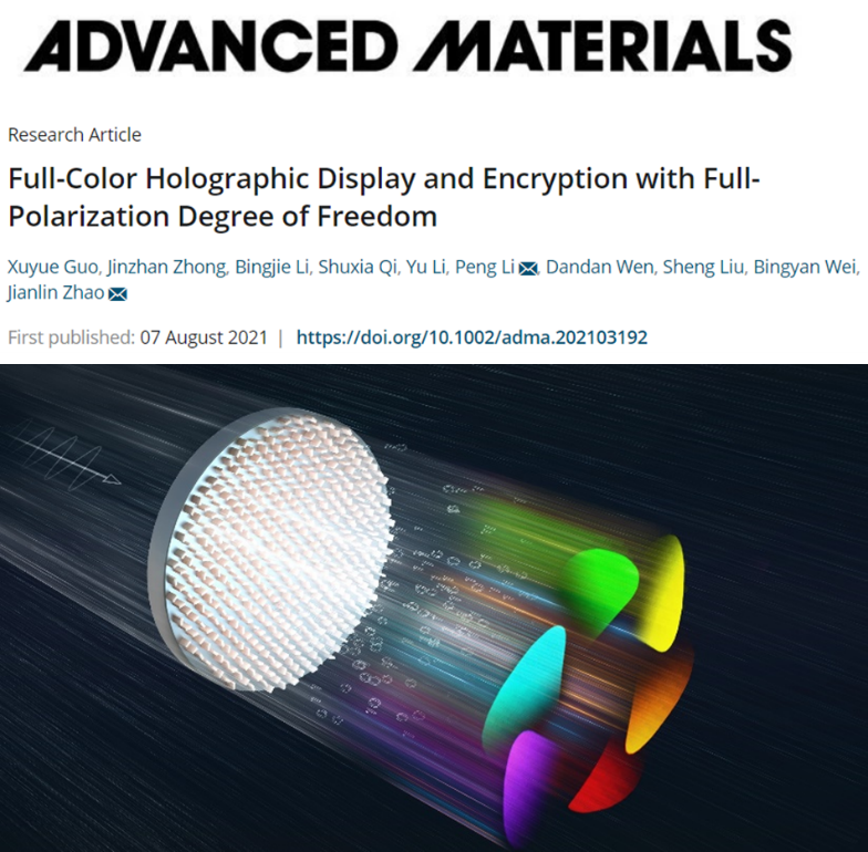 赵建林教授团队,在全偏振自由度调控的彩色全息显示与加密方面取得重要研究进展。相关成果以“Full-Color Holographic Display and Encryption with Full-Polarization Degree of Freedom”为题发表于国际顶级学术期刊《Advanced Materials》(DOI: //doi.org/10.1002/adma.202103192)。
