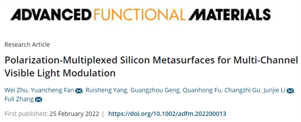 相关成果以“Polarization-Multiplexed Silicon Metasurfaces for Multi-Channel Visible Light Modulation”为题发表于高影响力学术期刊《Advanced Functional Materials》(DOI: 10.1002/adfm.202200013; IF:18.808)。西工大香腐