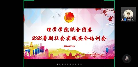 2020713日下午3点,理学学院联合团委在理学学院院楼214会议室与线上同步举办2020年暑期社会实践安全培训会,2019级理学类辅导员孙攀飞老师出席本次会议。