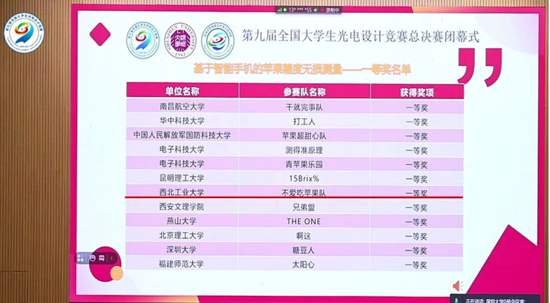 两支队伍入围总决赛。经过激烈角逐,最终在“基于智能手机的苹果糖度无损测量”的赛题中,香腐