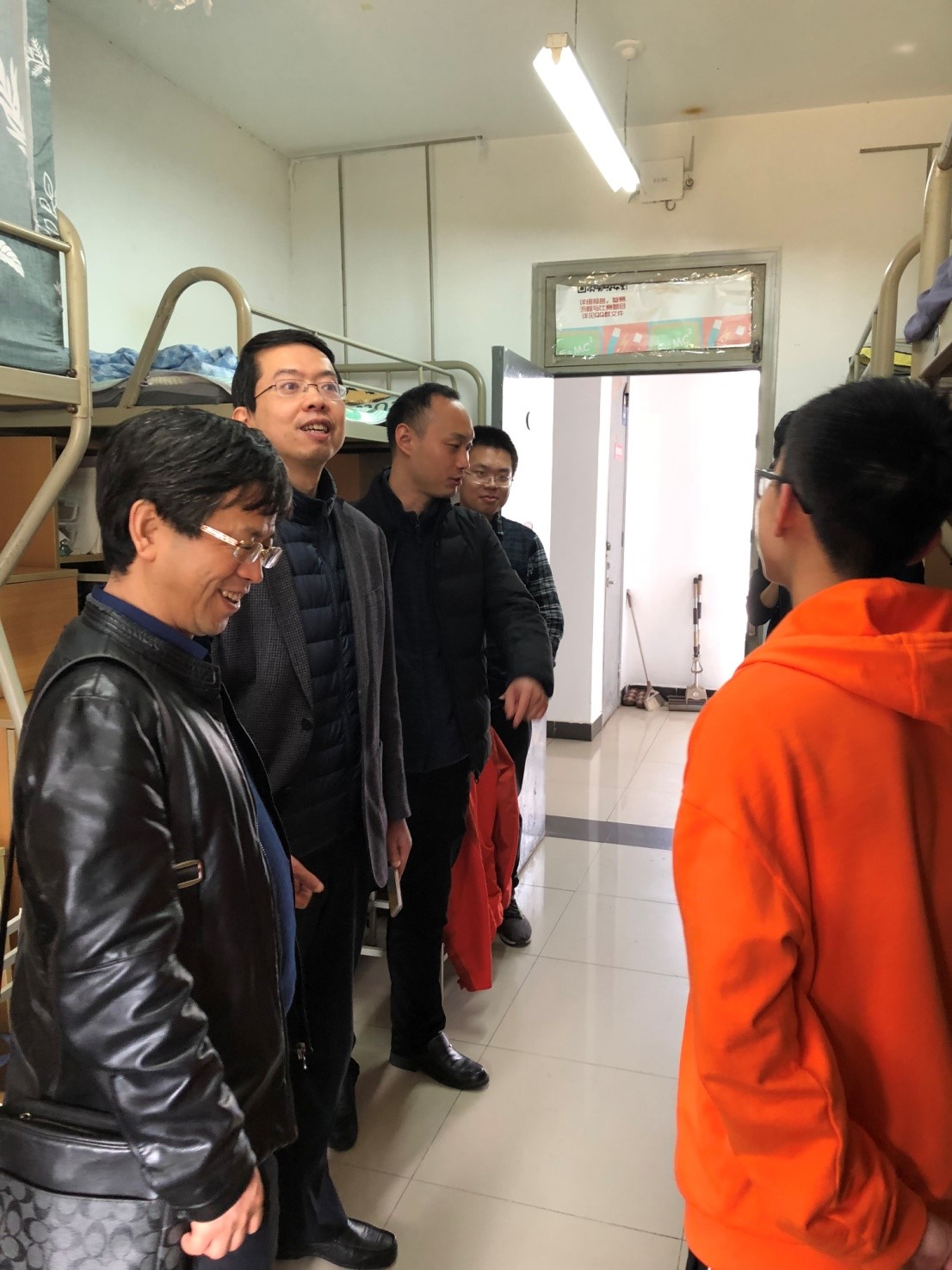 党委书记晁小荣、党委副书记王洲航、院长助理肖鼎新、辅导员谢鑫等前往学生宿舍,检查整改落实措施的完成情况,并就宿舍安全、宿舍卫生、宿舍文化、宿舍学风等方面与同学们进行广泛而深入的交流。晁小荣强调,宿舍是同学们生活、学习的重要场所,请大家牢固树立安全意识,坚决杜绝安全隐患,养成良好的生活习惯,让文明、卫生成为物理学院学子的共同标签,共创宜居、宜学的宿舍环境。