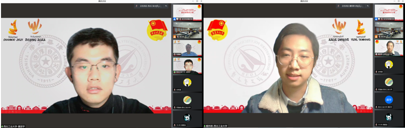 本科生黄辰宇、戴祎祺两位同学分享了自己参与全运会志愿服务的经历和难忘回忆,对清华大学即将参与冬奥会志愿工作的同学们表达真挚的祝福。